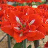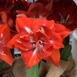 Hippeastrum Happy Nymph is perfect for those who love bold red colour combined with the richness and texture of a double bloom.