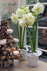 Expect a stunning transformation in just 6-7 weeks after planting, as these amaryllis bulbs produce spectacular, oversized blooms that captivate all who see them. Perfect for pots and indoor décor, White Nymph Hippeastrum is for those who appreciate the finer things in life.