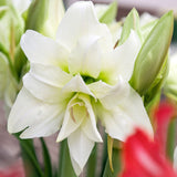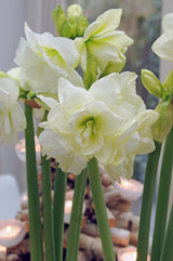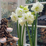 The White Nymph Hippeastrum brings a touch of elegance and purity with its breathtaking white blooms. These large, high-quality bulbs deliver an impressive display with 3-4 sturdy stems, each packed with multiple blossoms. Standing tall on 40-60 cm stems, White Nymph’s striking, double-layered flowers are a showstopper that adds a serene sophistication to any indoor or outdoor setting.