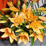 Brunello Lilies have stunning, vivid orange blooms, with delicate recurving petal tips.