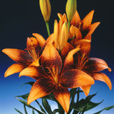 Orange Art Asiatic Lily is an eye catching orange with deep burgundy centred blooms.