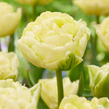 Thick, super strong stems are topped with large, creamy-white blooms with a pale buttery center. Double petals for double the beauty.
