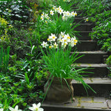 Daffodil bulbs are best planted in bold clumps, 8-10cm deep and 10-15cm apart.
