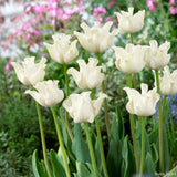 Gently ruffled petals arch outward and bases may be blushed with a soft shadow of smoky lilac. Ideal cut flowers due to their long-lasting vase life.