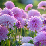 Dahlia ‘Blue Wish’ is a decorative-type dahlia that enchants with its soft, shifting hues. The blooms open with white petals tipped in lavender or purple, gradually deepening into a more uniform lilac as they mature—like a flower that paints itself over time.
