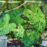 đ¸ Caladium 'Frog in a Blender' is a wild child of the foliage worldâchaotic, vibrant, and utterly unforgettable. This fancy-leaf variety lives up to its name with splashes of lime, creamy white, and deep green, creating a swirling, abstract pattern