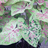 🌸 Caladium 'Sea Foam Pink' is a tropical stunner that blends soft elegance with playful charm. Bred by the University of Florida, this fancy-leaf variety features light yellow-green leaves splashed with pink blotches, creating a watercolor effect that glows in both sun and shade.