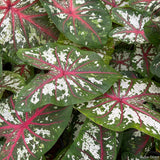 A hybrid of Christmas and Red Flash varieties, grow this Caladium easily in outdoor containers or indoors near a sunny window.