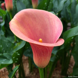Salmon Beauty Calla Lily with it's delightful, soft salmon blooms are a sight to behold.