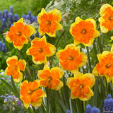 Congress Daffodil has an apricot cup with a gold base that is split wide open and lays flat against golden-yellow petals. The warm and welcoming colouring shows up wildly against dark-green foliage. A show stopper!
