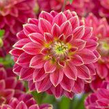 Dahlia ‘Mr Optimist’ is a decorative dahlia that brings a burst of cheer to the garden with its bright red blooms edged in golden yellow. The flowers are formal and symmetrical, with rounded petals that radiate warmth and positivity—true to its name.