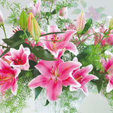 Oriental Lilies are a favourite among many, huge blooms in red, pink, and white, these giant flowered Oriental Lilies produce 12-20cm blooms on strong stems 80-120cm high. An outstanding cut flower, they will grow well in most areas of the garden but prefer a sunny well drained position.