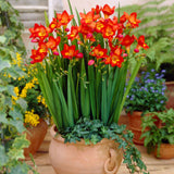 Our Stockholm Freesia is characterized by its fiery, vibrant red flowers and contrasting yellow centre. The blooms are a deep, true red, creating a bold and striking visual impact in gardens and floral arrangements.