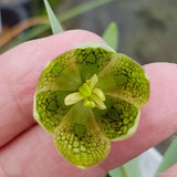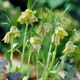 Emerald green bells lightly marked with reddish-brown stripe sometimes with a chequered pattern. Fritillaria Hemonis have up to three open bell-shaped flowers.