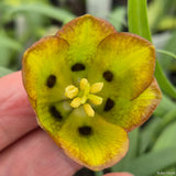 Fritillaria ionica thessala, a rare subspecies of the Fritillaria family. Known for its delicate, bell-shaped flowers in soft green and purple tones.