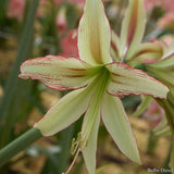 Fresh, modern, and beautifully distinctive, Hippeastrum Emerald stands out for its unusual colouring and clean, contemporary look. Large blooms open in soft white, washed with cool green tones that are strongest at the centre and gently fade outward through the petals. Fine green veining adds depth and gives the flowers a crisp, luminous appearance.