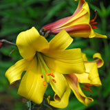 These Trumpet Lilies are simply outstanding. Their long skinny trumpets on tall stems boast 12 – 20cm blooms at 80+ cm high. Easy to grow they can produce up to 10-15 flowers per stem when fully grown. Golden Splendour has a lovely shade of red on the reverse of the petals.