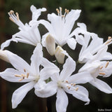 These easily grown “Diamond Lilies” are a magnificent show in mid Autumn and a great cut flower. They prefer a sunny, well drained position. Under the eaves of the house is ideal. Established clumps can be left undisturbed for years. Nerines need a light well drained soil of average fertility with not too much nitrogen. Place the bulbs in a sunny position with the shoulder of the bulbs showing above the ground. Space approximately 8-10 cm apart in bold clumps or ribbon borders. To grow longer stems, 50% shade will help draw them out.