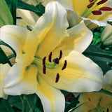 Conca D'or Lilies have gigantic, Oriental-type flowers of lemony yellow, with a lovely contrast of cream white outer edges.