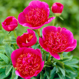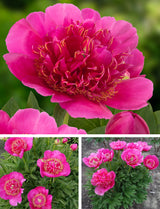 The Anemoniflora is a strikingly beautiful compact plant - new to us, but an old-fashioned peony with finely cut green foliage and medium-sized cerise pink double flowers. Low growing with very bright flowers!
