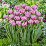 The petals of this showy, double tulip are a pale shade of pink with lilac tones.