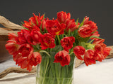Bold and beautiful! the long-lasting, large tomato-red blooms of Tulip 'Abba' resemble peonies with their double row of feathery petals surrounding a yellow heart.