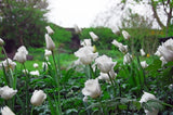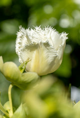 Honeymoon tulips really turn heads when they bloom - They’re as white as snow, gleaming atop vivid and sturdy green stems. Each individual petal of Honeymoon has a dainty fringe, giving the flowers an almost icy appearance