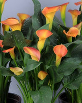 Lady Marmalade Callas are one of the hardiest varieties we have - their stunning blooms fade from Mango red, to Apricot, and are great at adding a bit of colour to the garden.