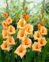 Gladioli Flevo Beach produces strong stems of apricot-golden flowers - quite the delight.