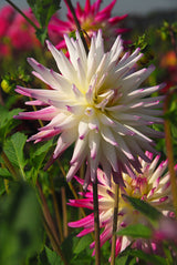 Cactus Dahlia’s are well valued for their large spiky florets. Flowering up to 120 cm tall they are very easy to grow and provide a rewarding display with very little effort. Plant the tubers with the main growing tips just below the surface of the soil. Firm the soil around the tubers, being careful not to damage them.