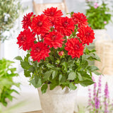 Dahlia Heatwave is a low-growing dahlia with bright red flowers.