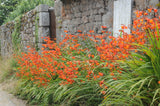 Bring bold drama to your borders with Crocosmia masoniorum, a South African stunner known for its upright sword-like foliage and blazing orange blooms. From midsummer to early autumn, arching stems erupt with fiery, upward-facing flowers that hum with energy—drawing in bees, butterflies, and admiring glances alike.