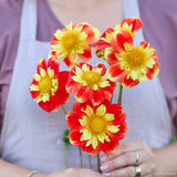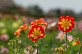 These tall plants burst with a cheerful display of bright yellow-and-red, single-petaled blooms. Unlike typical collarette types, this unique variety stays fresh longer in a vase, making it a fantastic choice for lively cut flower arrangements.