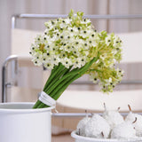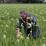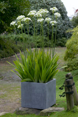 Think of this as the statuesque big sister to the shorter, neater Ornithogalum thyrsoides. Where thyrsoides offers pure‑white blooms in sweet, pyramid-shaped clusters, saundersiae towers overhead — tall, elegant stems crowned with creamy‑white, starry flowers gathered into bold, rounded umbels. Each bloom flashes a tiny black beauty spot at its base, adding intrigue up close.