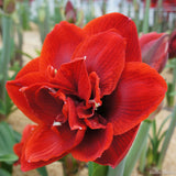 Hippeastrum Cherry Nymph is perfect for those who love strong colour, dramatic form, and the richness of a double bloom.