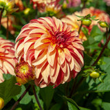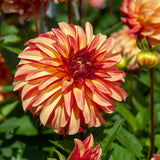 Irish Pinwheel Dahlias - a unique beauty! lovely pointed petals of Butter yellow, tipped with cherry red.