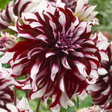 The blooms are a delightful blend of deep burgundy and pure white, with some petals solid and others striped. Just a few stems makes a stunning arrangement.